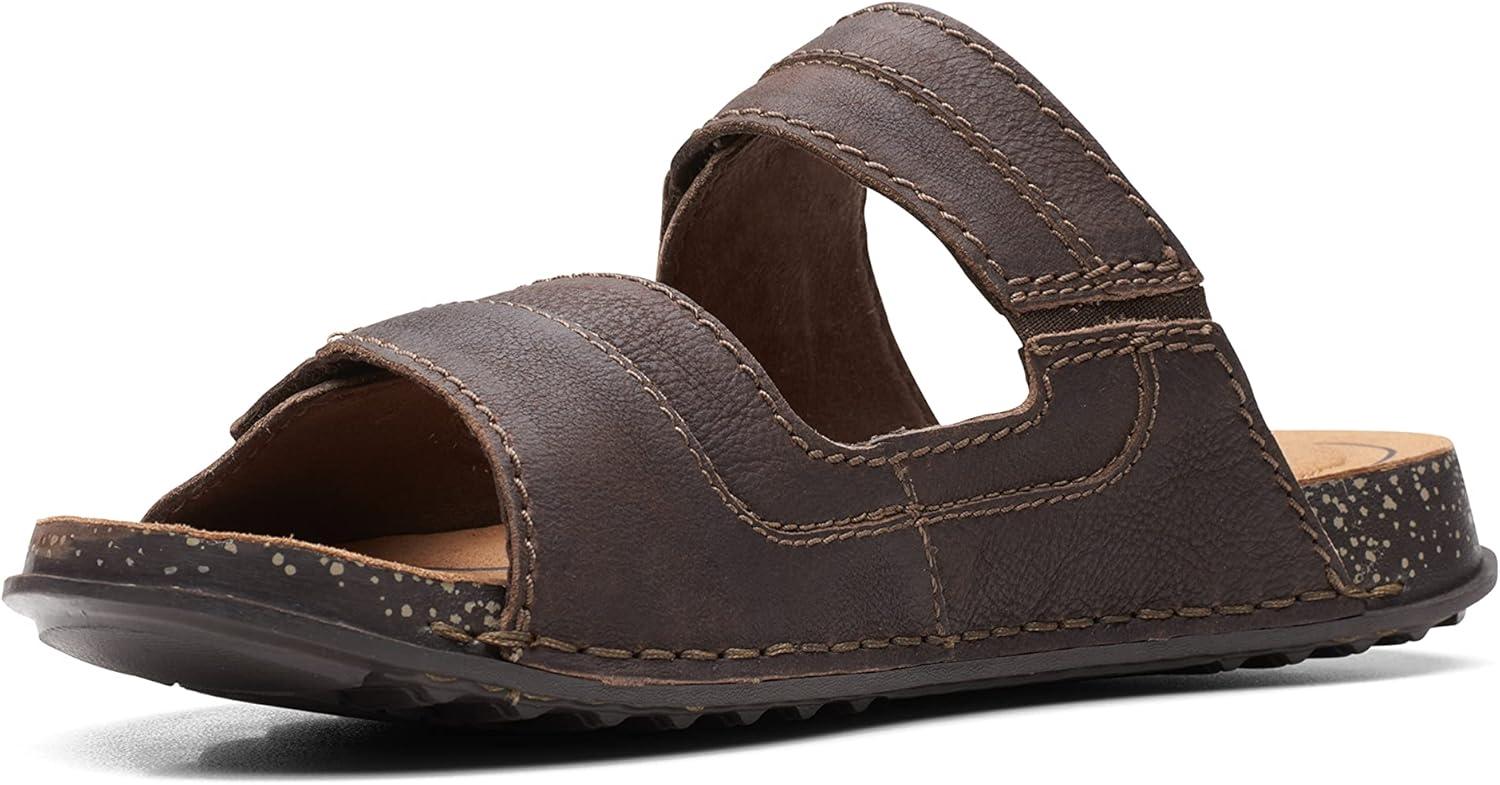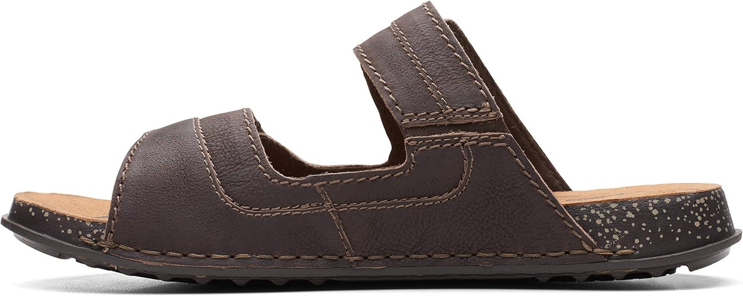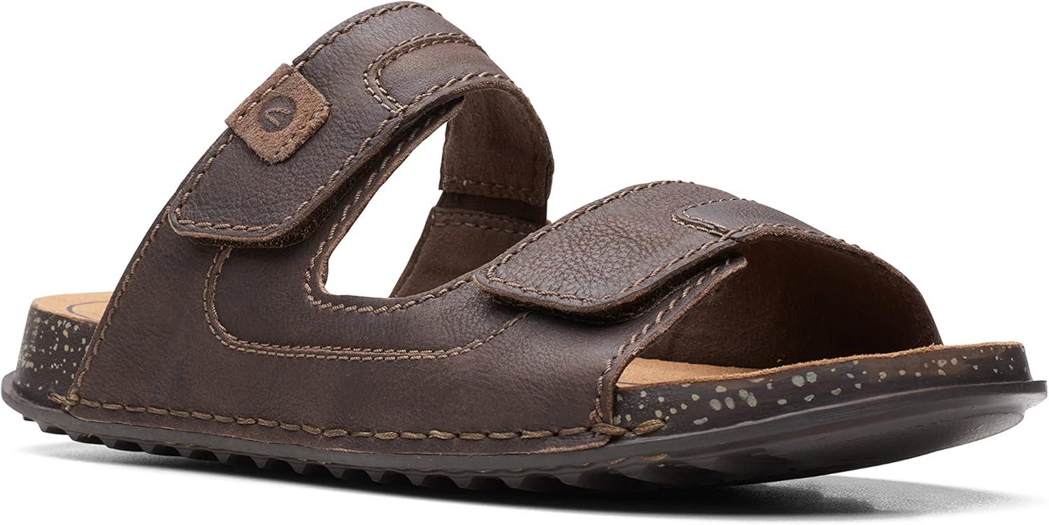 A timeless profile, Crestview Easy is a staple lifestyle sandal that melds heritage Clarks design with features for lasting summer comfort. Heavy gauge stitch details and pattern piecing nod to a crafted aesthetic while a breathable OrthoLite® foam footbed, lightweight sole and adjustable strap make for airy, flexible and comfortable movement. – Responsibly sourced black leather upper – Breathable OrthoLite® foam footbed with microfibre sock – Lightweight EVA outsole – Adjustable back strap for a custom, secure fit – Side-stitch construction for increased flexibility