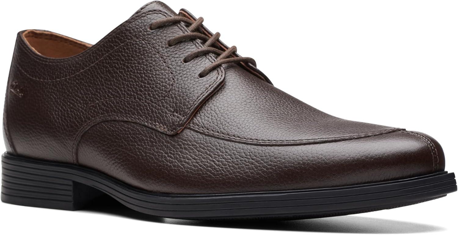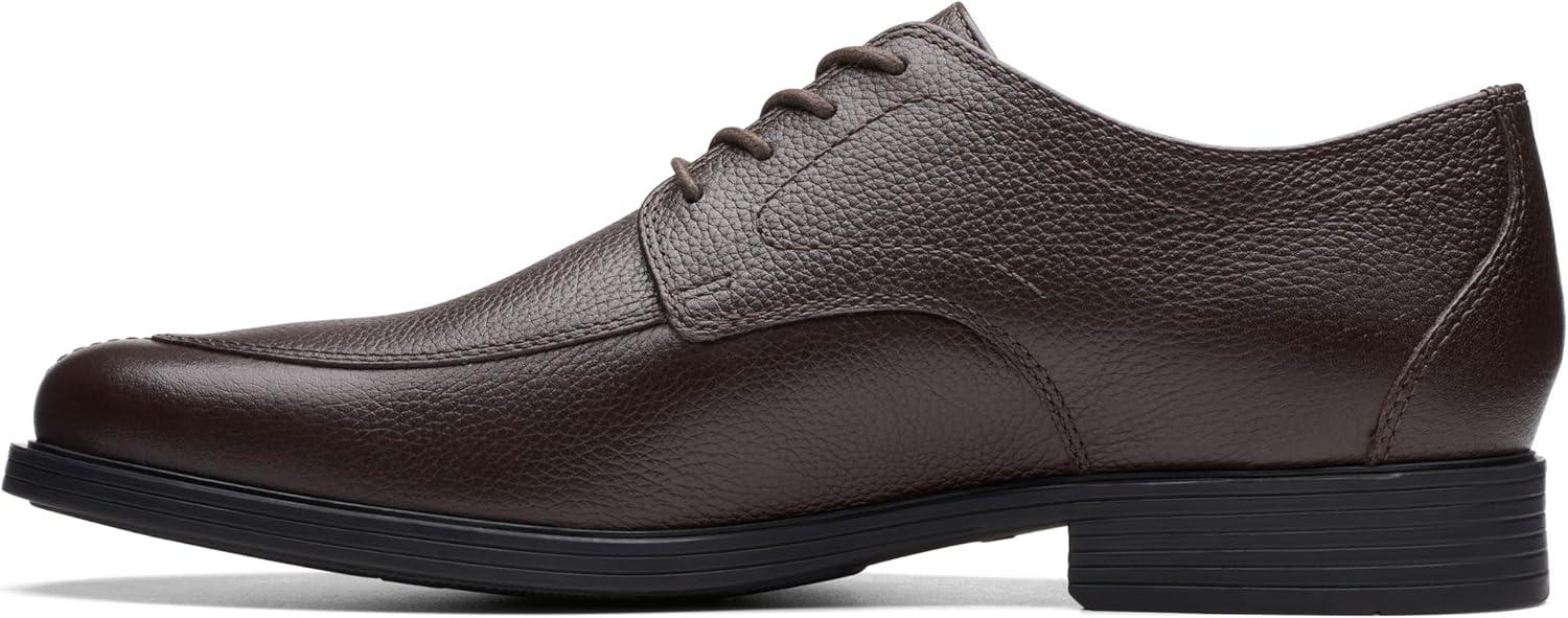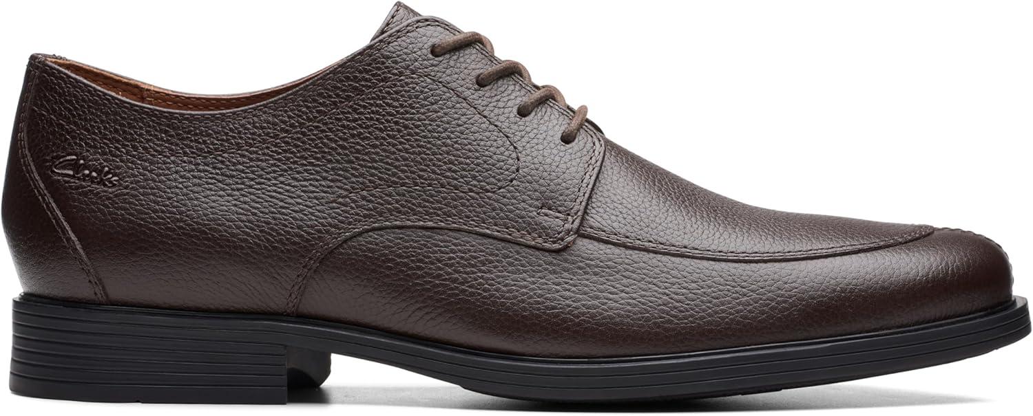 Lending a smart finish to every ensemble, Clarks Whiddon Apron Oxford shoe comes together in classic, grained leather that only improves with age. Big on timeless aesthetics and big on unmatched comfort too, this smart silhouette is underpinned by a super-soft footbed and a grippy sole to make every step feel just as good as it looks.-Premium dark brown tumbled leather upper-Lace-up fastening for a secure, custom fit-Ortholite® Hybrid™ footbed delivers targeted, dual-density, breathable comfort, using 20% recycled rubber and foam to minimise environmental impact-Durable, grippy rubber outsole