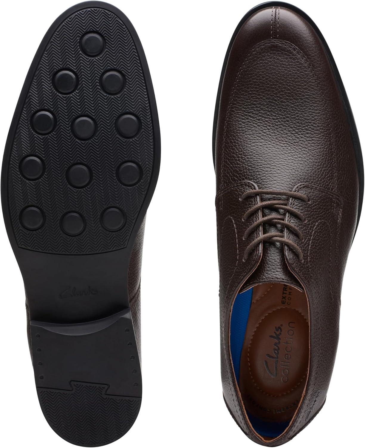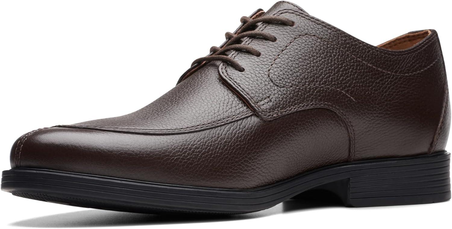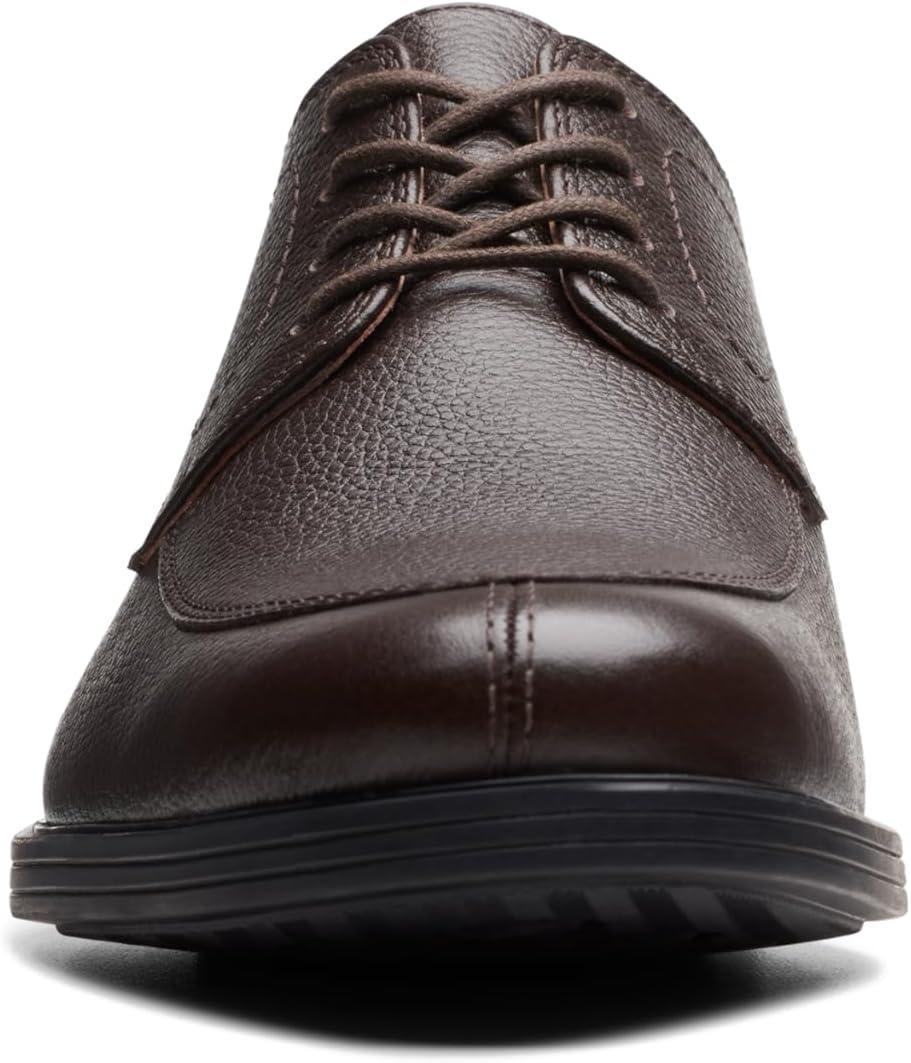 Lending a smart finish to every ensemble, Clarks Whiddon Apron Oxford shoe comes together in classic, grained leather that only improves with age. Big on timeless aesthetics and big on unmatched comfort too, this smart silhouette is underpinned by a super-soft footbed and a grippy sole to make every step feel just as good as it looks.-Premium dark brown tumbled leather upper-Lace-up fastening for a secure, custom fit-Ortholite® Hybrid™ footbed delivers targeted, dual-density, breathable comfort, using 20% recycled rubber and foam to minimise environmental impact-Durable, grippy rubber outsole