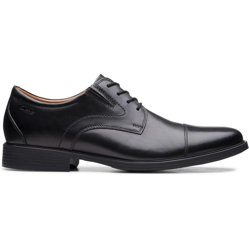 Clarks Men Whiddon Cap: This office-ready captoe style features a full grain leather upper and a pair of subtle elastic insets that ease its fit. As an Ultimate Comfort style, it benefits from full-length cushioning and a moisture-wicking Ortholite footbed.