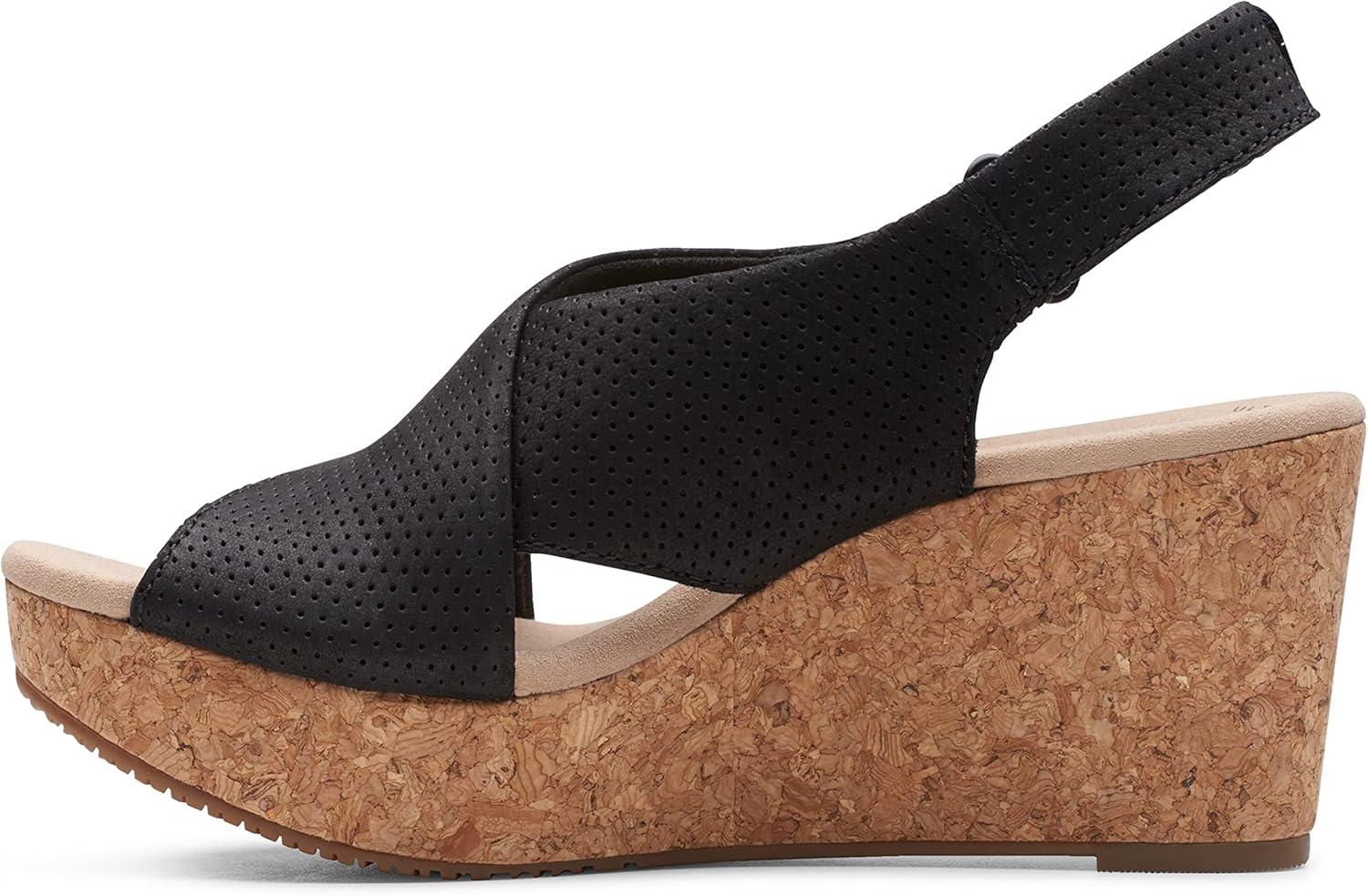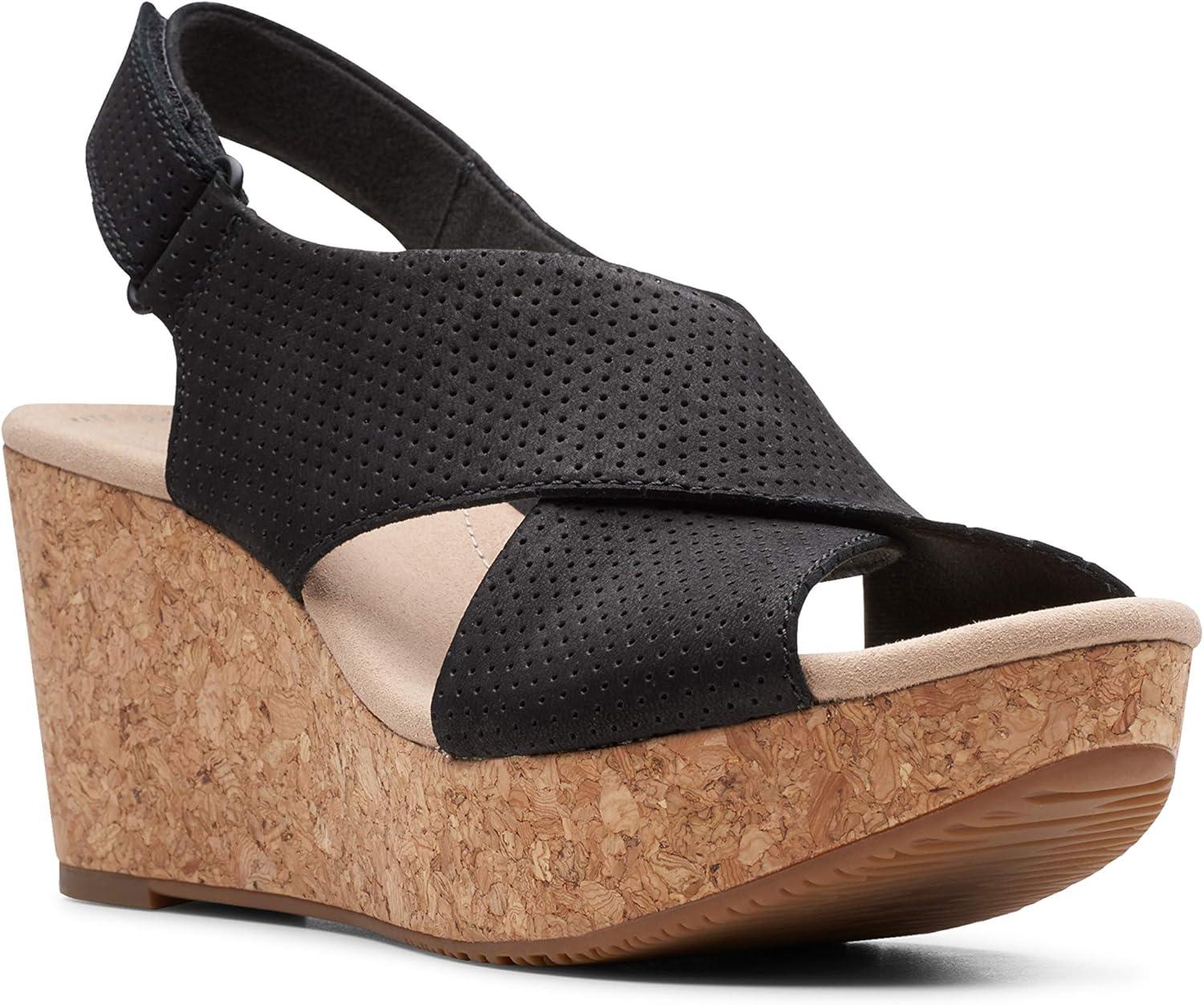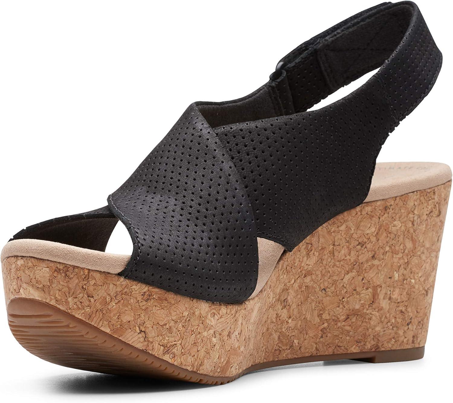 Your staple shoe for spring/summer! the front cross band elongates legs while the adjustable hook and look closure wraps the back of your foot. these are flattering sandals for everyone. these wedges have some platform built into the height and come with clarks comfort soft technology. so they are comfortable and beautiful Your staple shoe for spring/summer. the front cross band elongates legs while the adjustable hook and look closure wraps the back of your foot. Your staple shoe for spring/summer. so they are comfortable and beautiful.