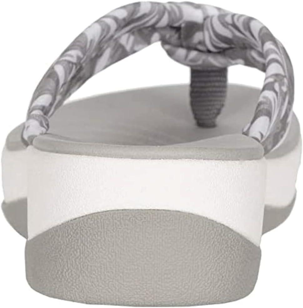 The Arla Glison from Clarks Cloudsteppers provides the best of comfort technology with classic feminine appeal. A fabric upper feels delicately soft between the toes, while an EVA midsole keeps the sandals feather light. The OrthoLite footbed with Cushion Soft technology ensures optimal comfort all day. An ultra-wearable flip-flop with no shortage of personality. Sole material TPR.