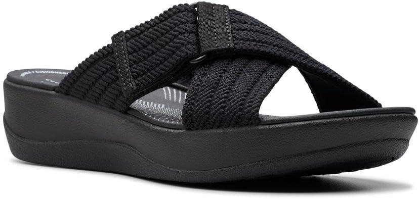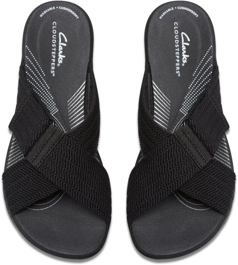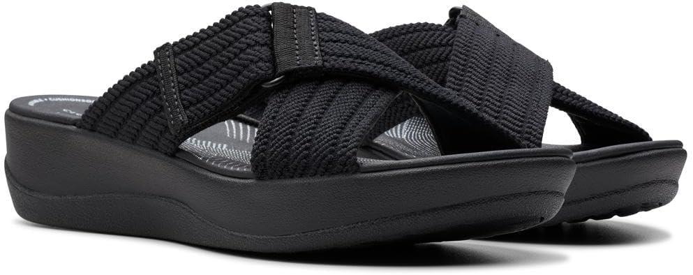 Clarks womens Arla WaveSlide Sandal(Black/White)