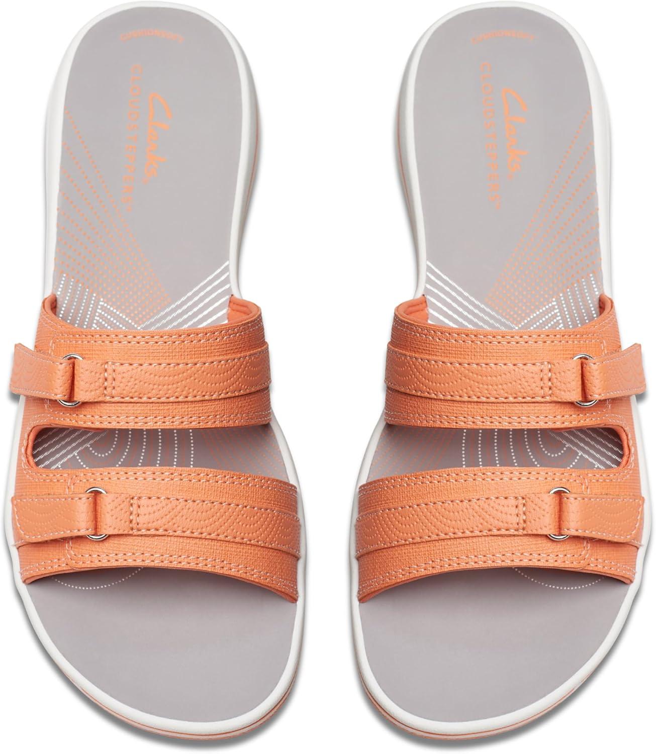Clarks womens Breeze PiperSlide Sandal(Tangerine/Pop)
