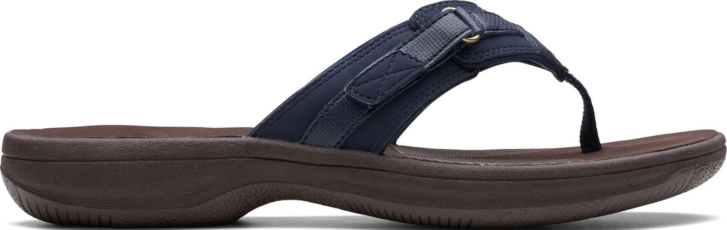 Clarks Women’s Breeze Sea Flip-Flop(Navy Synthetic/Brown Sole)