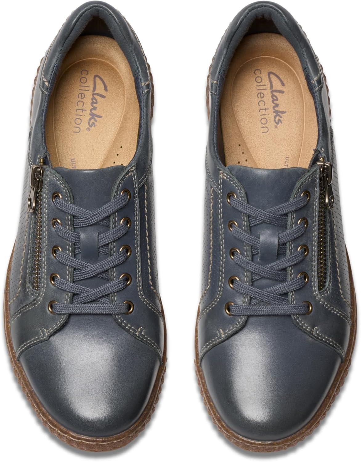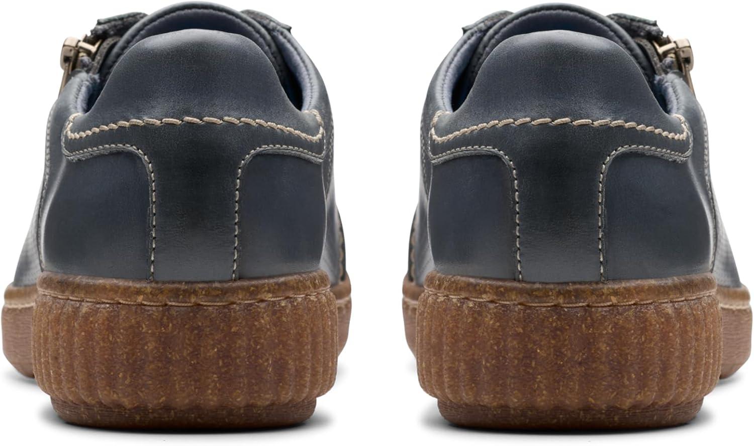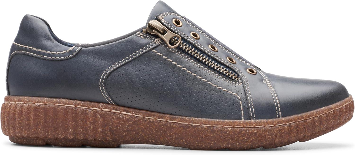 Clarks Women’s Caroline Janna Leather Side Zip Fashion Sneaker(Dark Blue)