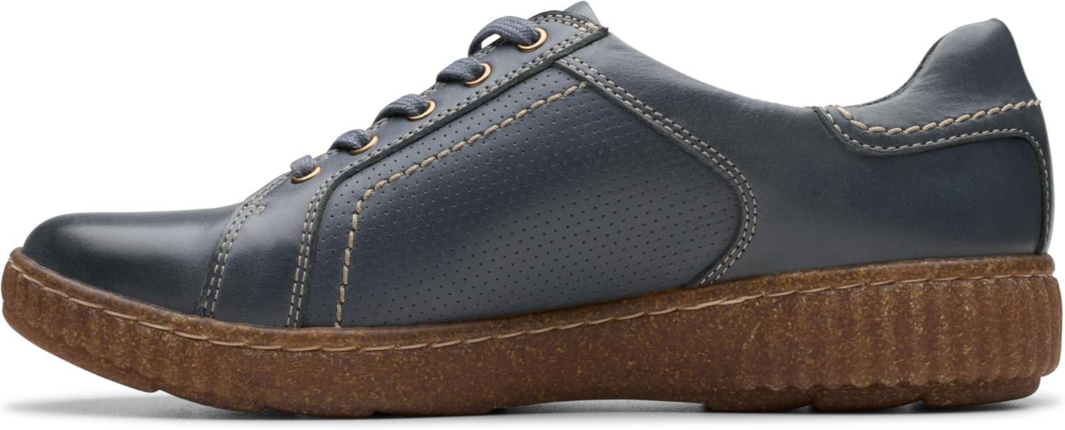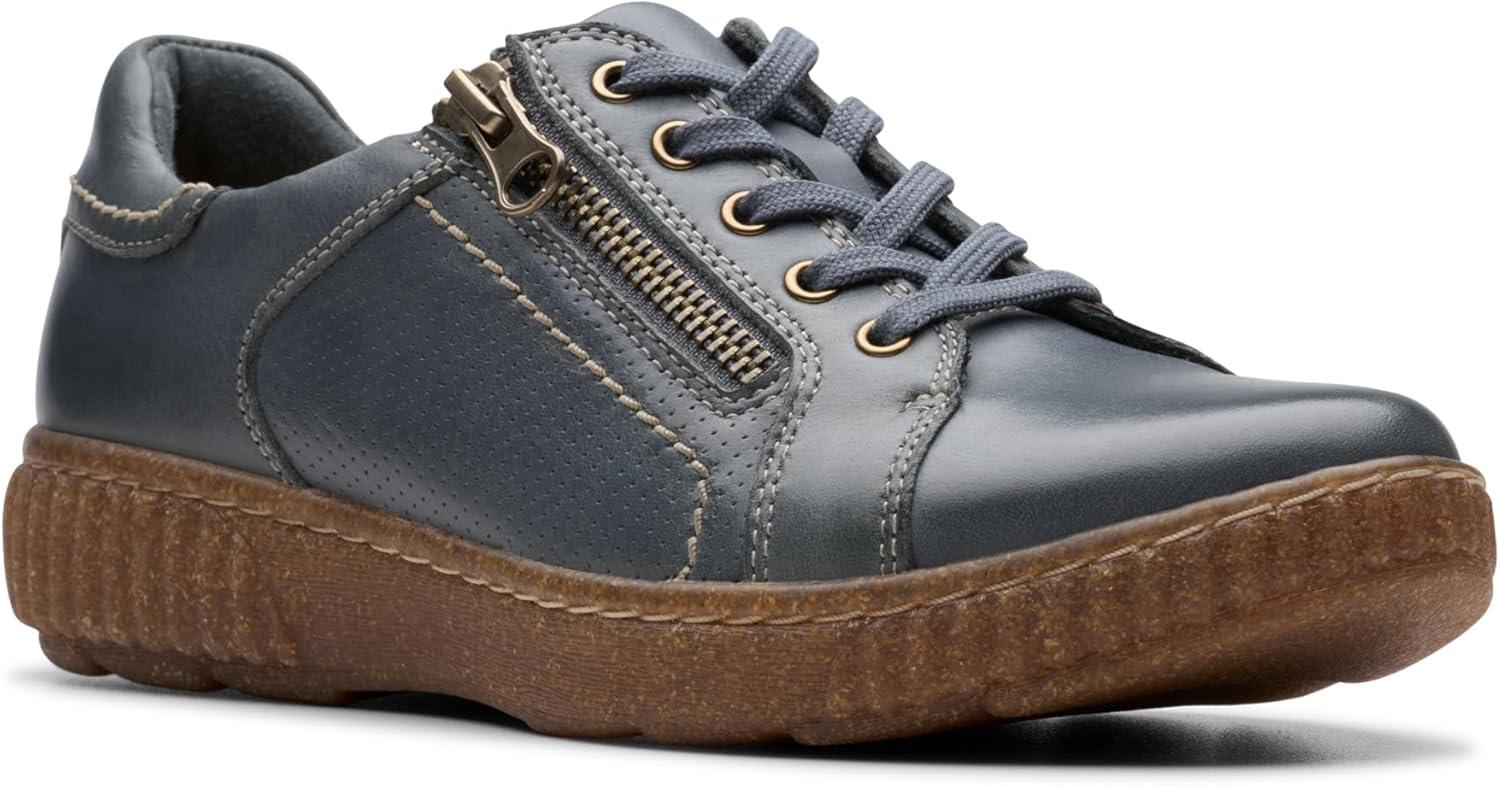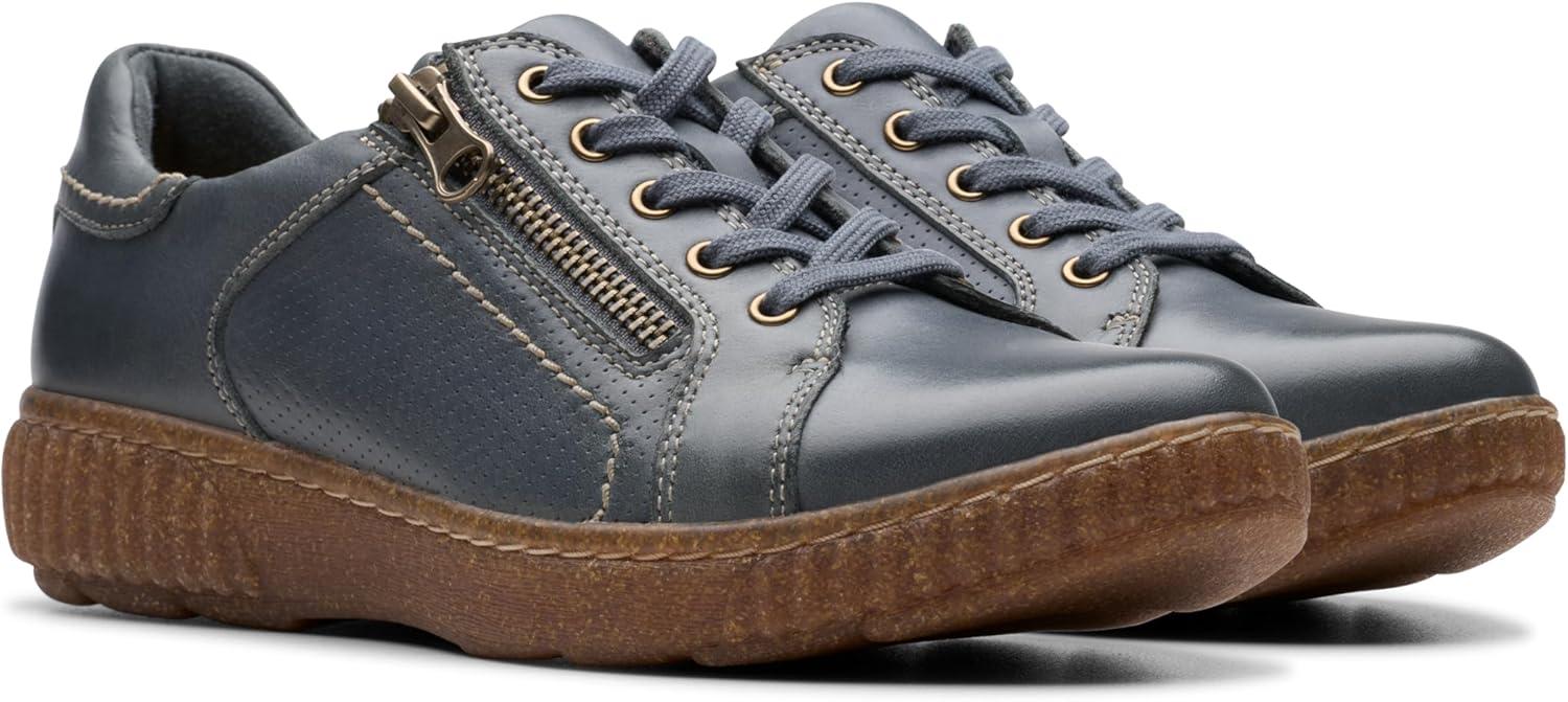 Clarks Women’s Caroline Janna Leather Side Zip Fashion Sneaker(Dark Blue)