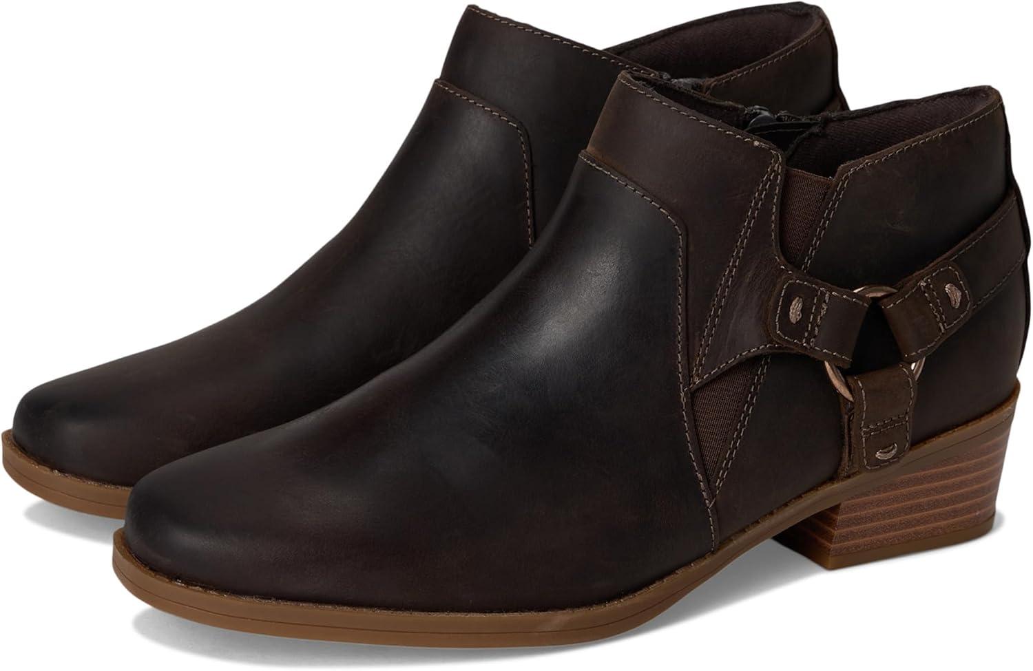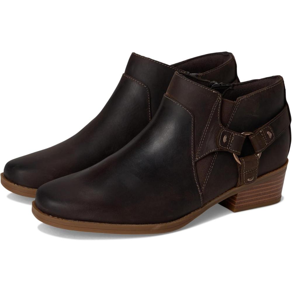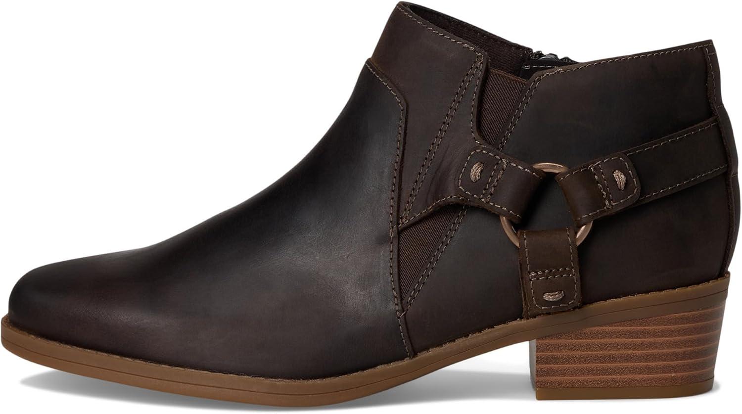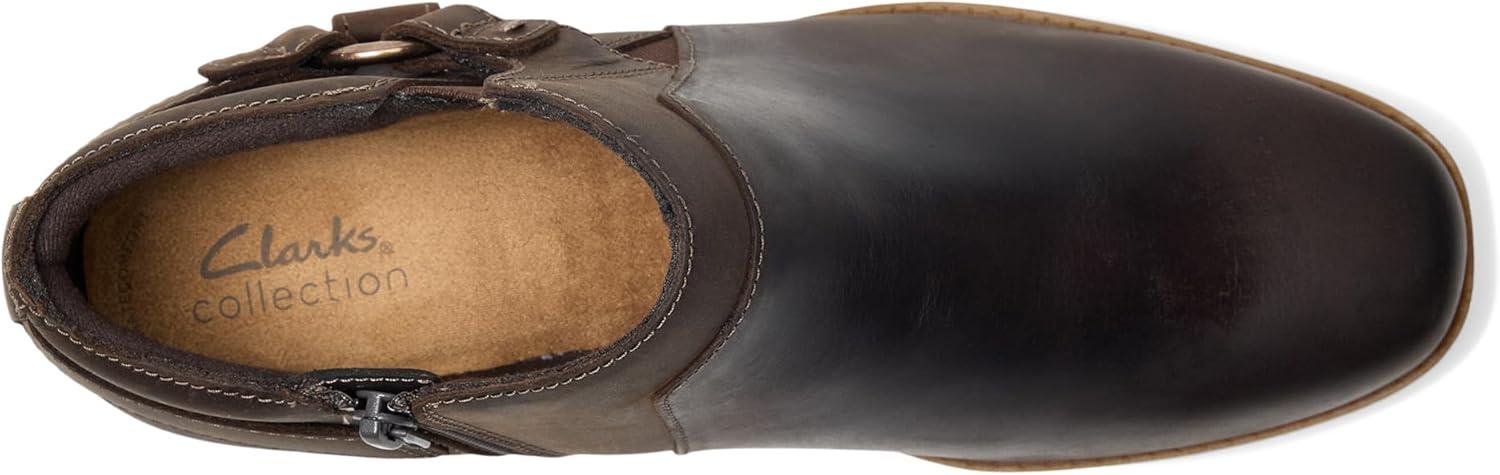 Clarks Collection Danyelle Gema is the perfect everyday boot, designed for versatile casual styling. Its crafted aesthetic sets it apart, while a statement buckle lends a polished finish. Featuring a flexible, grippy sole and soft underfoot cushioning, it's the ultimate combination of style and comfort. – Premium taupe oily leather upper with buckle hardware accent – Ultimate Comfort foam footbed delivers lasting cushioning – Smooth textile upper lining feels soft against the foot – Flexible TPR (thermoplastic rubber) sole delivers ultimate underfoot traction – Heel height: 40mm