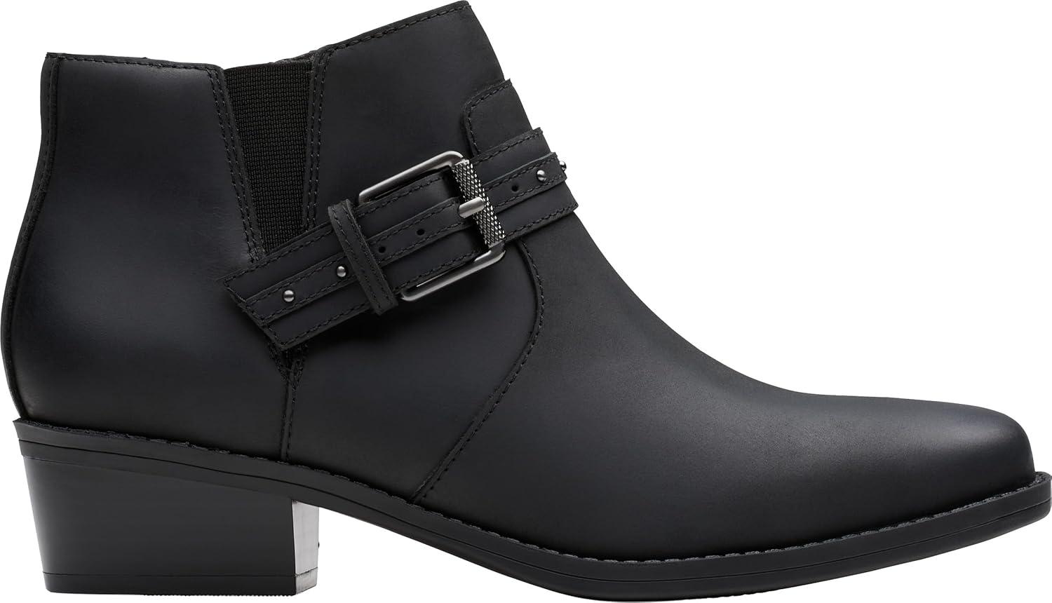 Clarks Women’s Danyelle Wish Ankle Boot(Black Oily Leather)
