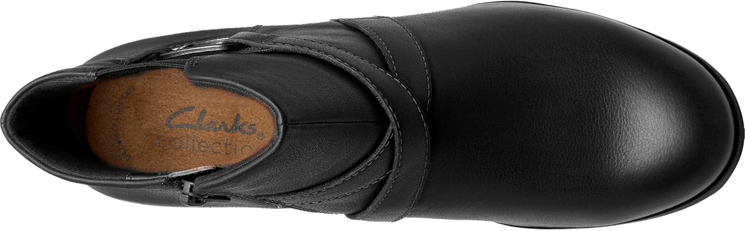 Clarks Women’s Emily2 Henley Leather Ankle Zip Bootie(Black Leather)