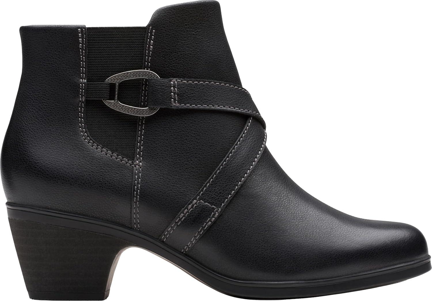 Step into effortless style with this versatile leather ankle boot engineered for all-day wear. With wide width sizes available, Clarks Emily 2 Henley’s design ensures a comfortable fit, while the decorative buckle and side zipper add fashionable convenience. Included Ultimate Comfort foam underfoot delivers lasting cushioning, and the grippy TPR sole with a block heel offers secure stability. Whether you’re heading to the office or enjoying a casual weekend outing, this women’s bootie combines premium materials, smart comfort features, and a flattering design that complements any wardrobe.