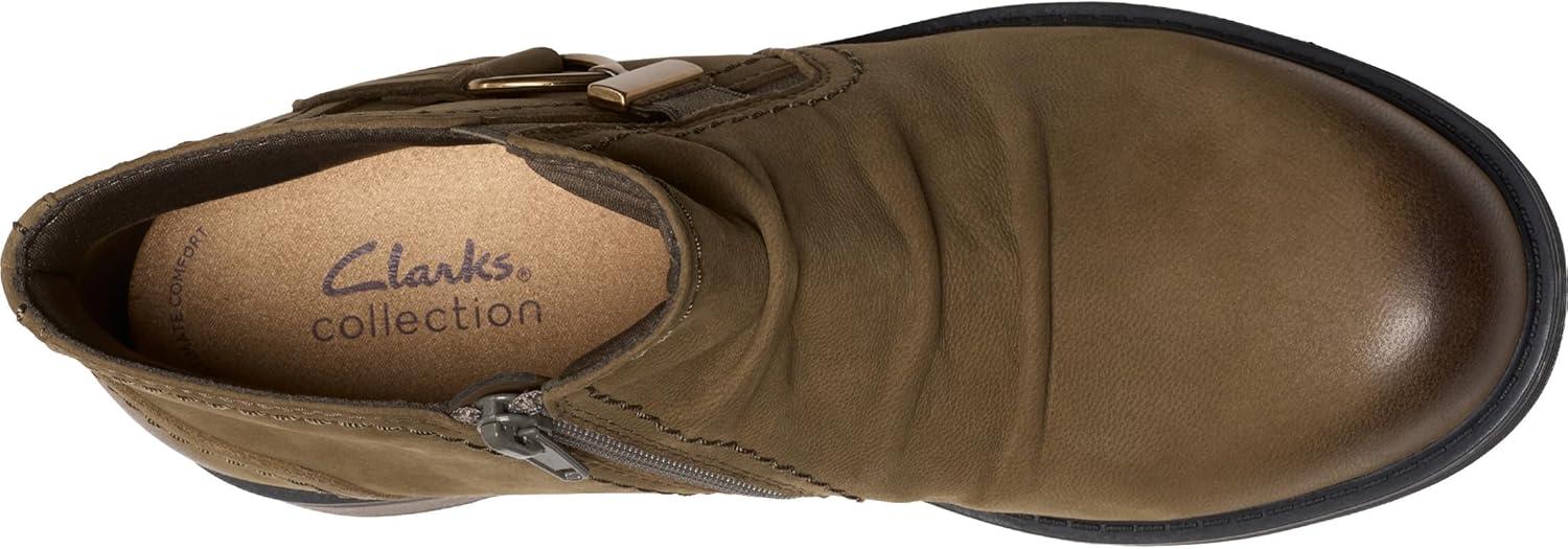 The Hearth Clara is known for being versatile, often suited for both office settings and casual outings, offering both comfort and a classic, stylish look. This pair is crafted with a quality nubuck leather and features a short shaft, a trendy block heel, and buckle strap detail.