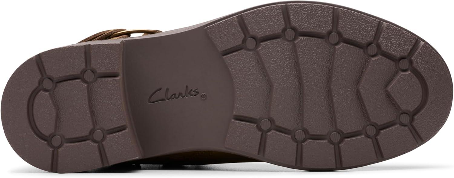 The wear-anywhere ankle boot to style with every pair of jeans you own, Hearth Kaylie is crafted in smooth leather to maximize versatility. Statement hardware and braided straps lend an authentic, crafted look, while Clarks Collection signature foam cushioning and chunky sole keep every step grounded. – Premium tan leather upper – 5mm Ultimate Comfort footbed delivers lasting comfort – Textile lining enhances breathability – Flexible, grippy TR (thermoplastic rubber) sole – Heel height: 45mm