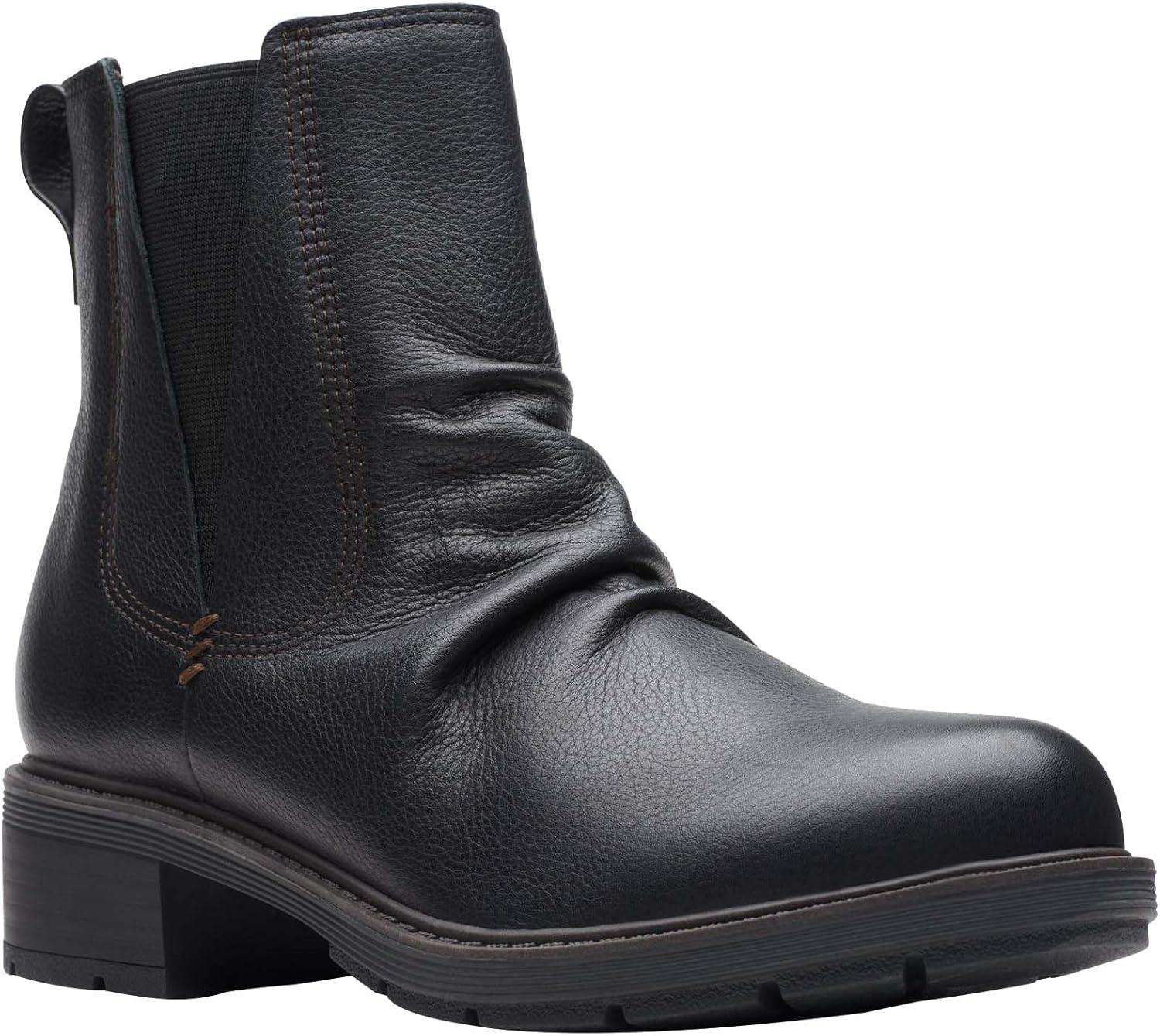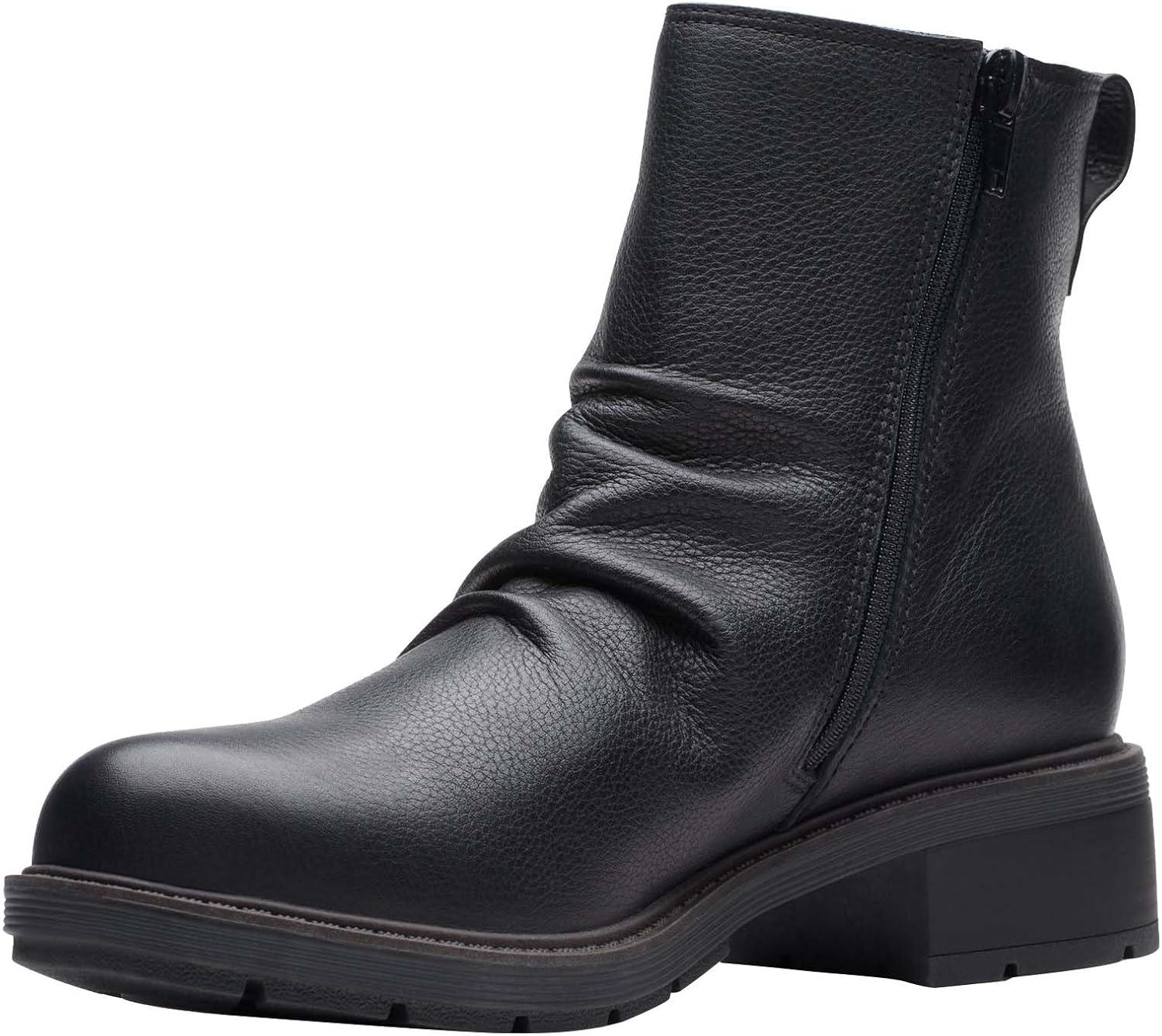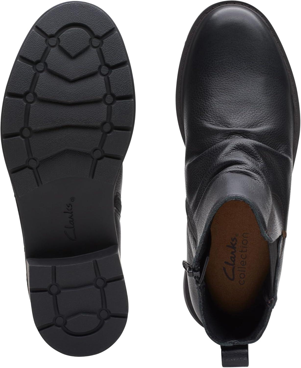 Clarks Women’s Hearth Sofia Ankle Boot(Black Leather)