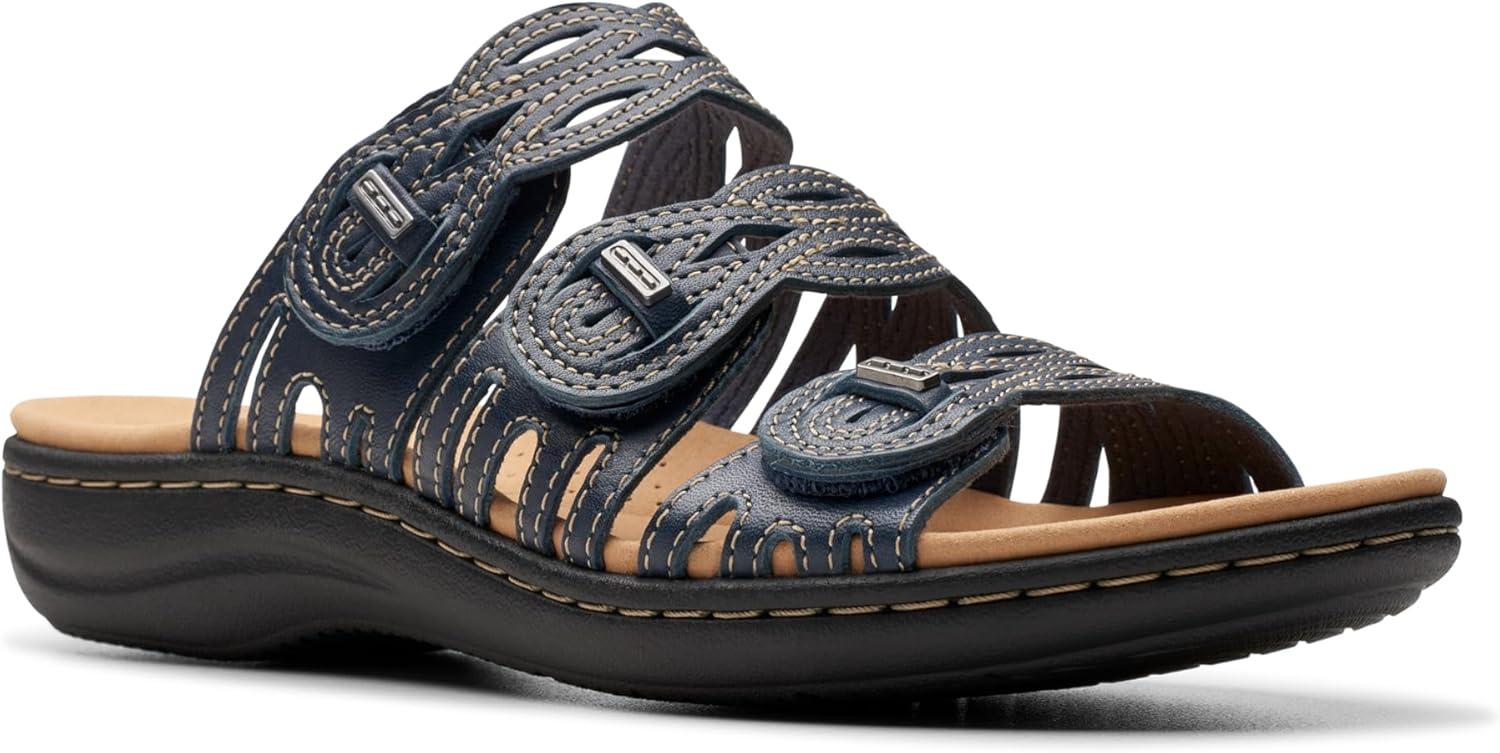 Clarks Women’s Laurieann Ruby Flat Sandal(Navy Leather)