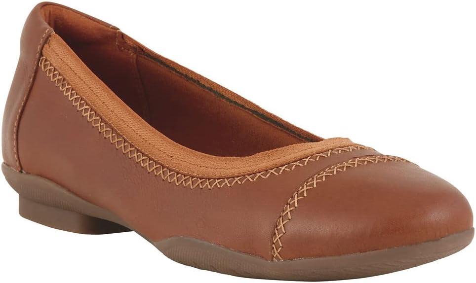 Clarks Women's, Sara Ballet Flat(Caramel Leather)