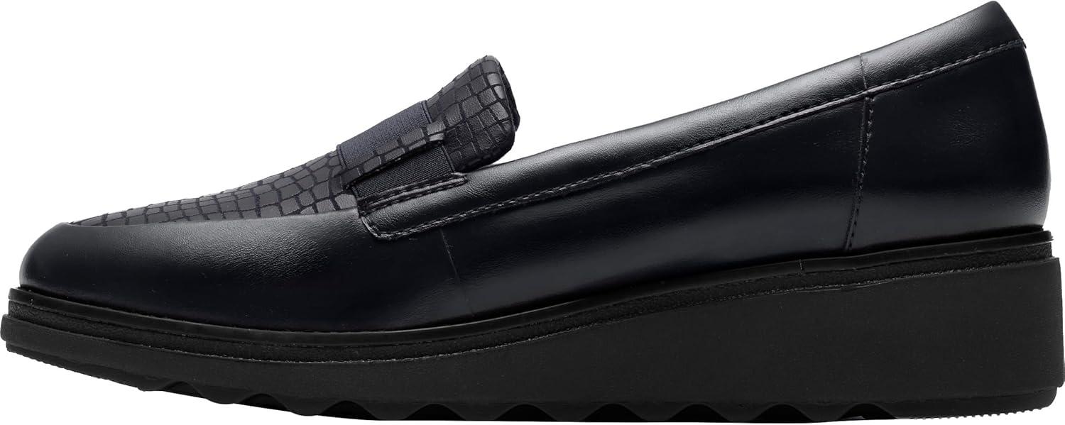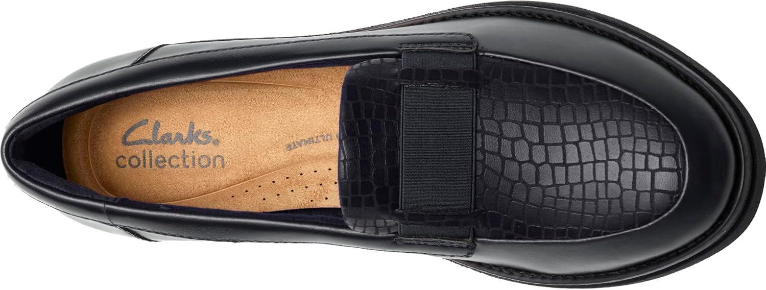 Clarks Womens Ellowyn Penny(Black Crinkle Patent Synthetic)
